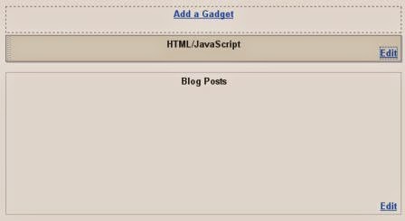 Save templates lagi, pemasangan kode-kode di Edit HTML selesai. Sekarang Anda kembali ke Layout/Tata Letak. Masukkan kode di bawah ini ke dalam kolom kosong diatas Blog Post yang sudah Anda buat pertama kali, klik Add a Gadget >> HTML/Javascript